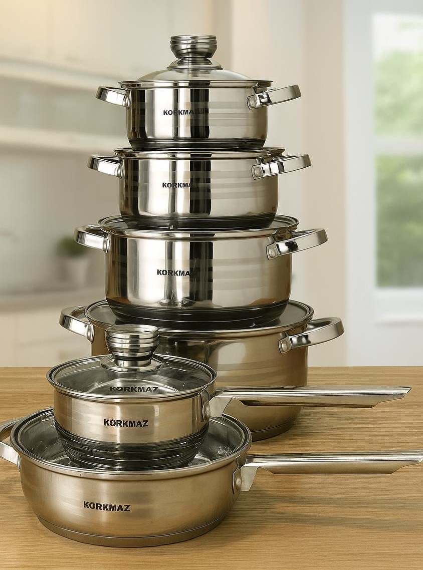 سرویس قابلمه ۱۲ پارچه استیل کرکماز C-108-1 | کیفیت و دوام عالی – بازرگانی تنها پیشتازان