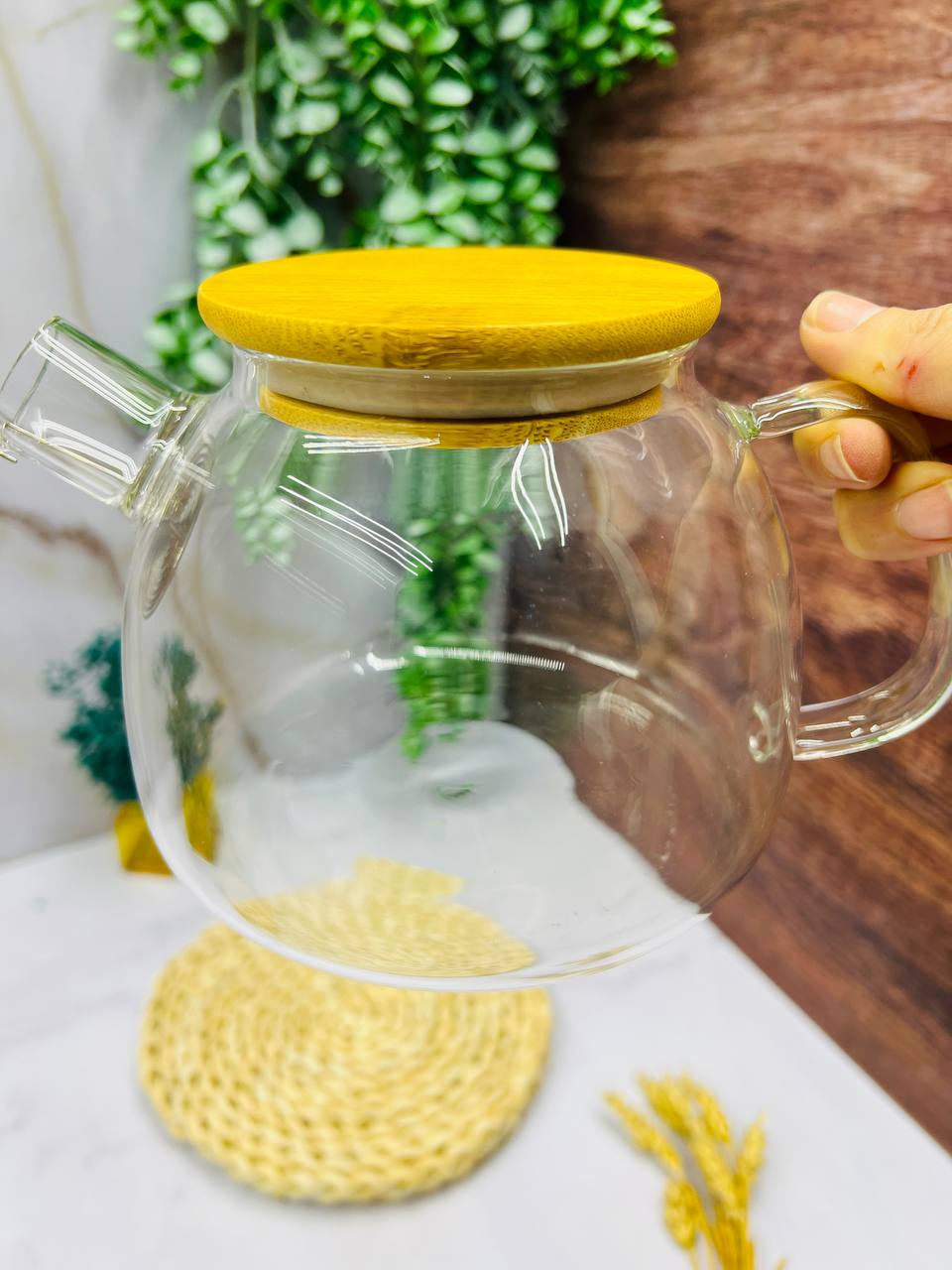 قوری پیرکس با درب بامبو شعله مستقیم